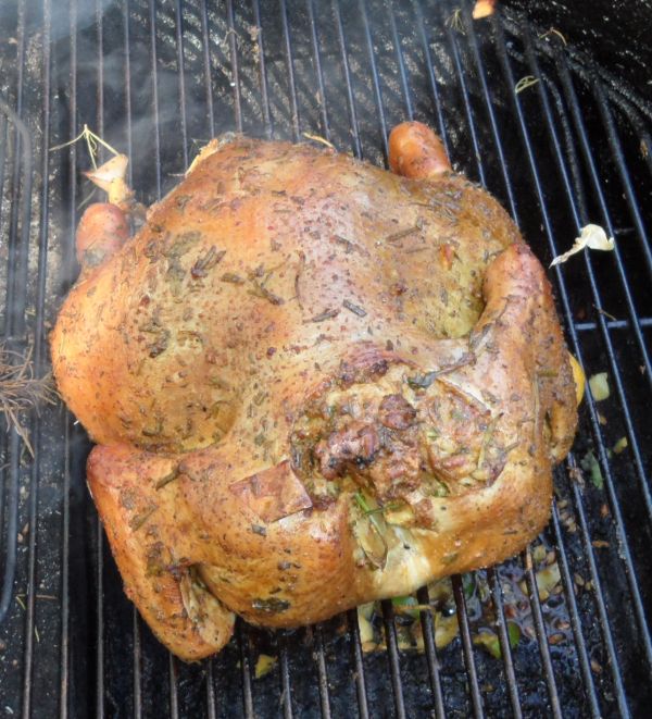From yesterday, rosemary smoked chicken covered with honey badger rub.