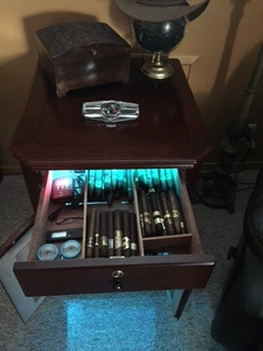 Everything you need can be purchased from Amazon or equal, online. My total cost was about $60. Mickey send me your email address in a private message and I will forward more detailed info. Laying everything out probably took an hour. Putting it together took about 4 hours. It is fun to try the different colors and light patterns, or just to be able to see all your cigars at night. One thing that the bright light showed me was that I do have some air leaks around my door hinges. Another project... |