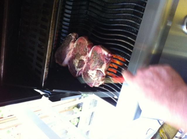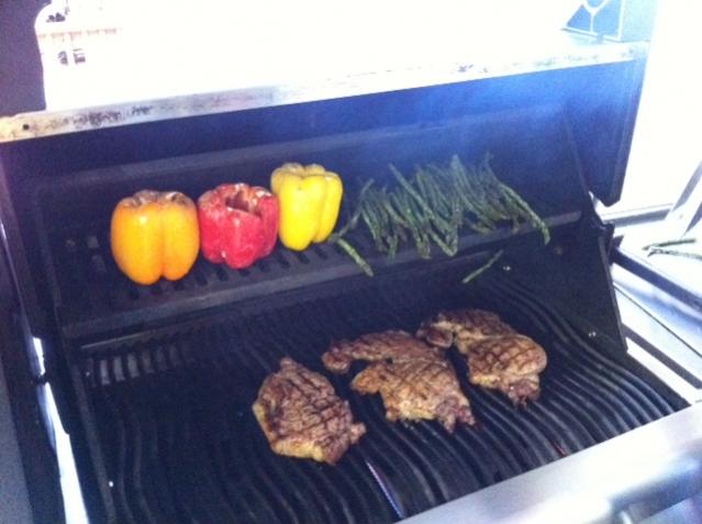 Dad was in town so we cooked a few Prime Rib Steaks with Asparagus and Peppers... great time and great fun...