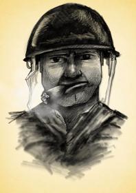 I agree with the cig, is he wearing an English / Canadian style helmet or is it just like WWI?