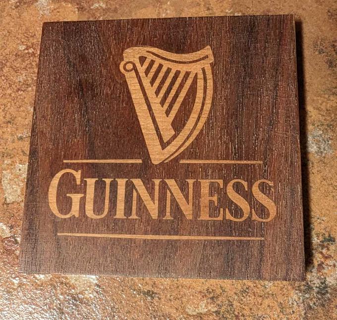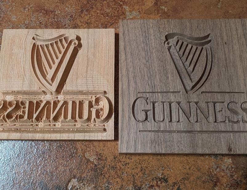 The process is quite involved and it's not all automated. There's a good bit of labor not only in the machining setup and time but also in the handwork of glue-up, sanding, and finishing with a protective oil like Rubio Monocoat. These are NOT just simple lasered pieces, each is dimensional unlike the flat laser art you've seen. See below for photos of the male/female process of how the pocket and inlay is made. Any number of hardwoods can be used to create a desired effect. Each inlay needs to be done for each color or texture of wood corresponding to the design. Other materials like epoxy or synthetic stone can also be an option. True bespoke pieces can also be created based on artwork provided or I can design something for you. With all that said, what do you think would be a reasonable selling price for work such as this? Mirrored male/female pieces Attachment 19963 Guinness logo: Walnut and Cherry Maker's logo: Cherry and Bloodwood Attachment 19964 Attachment 19965 |
