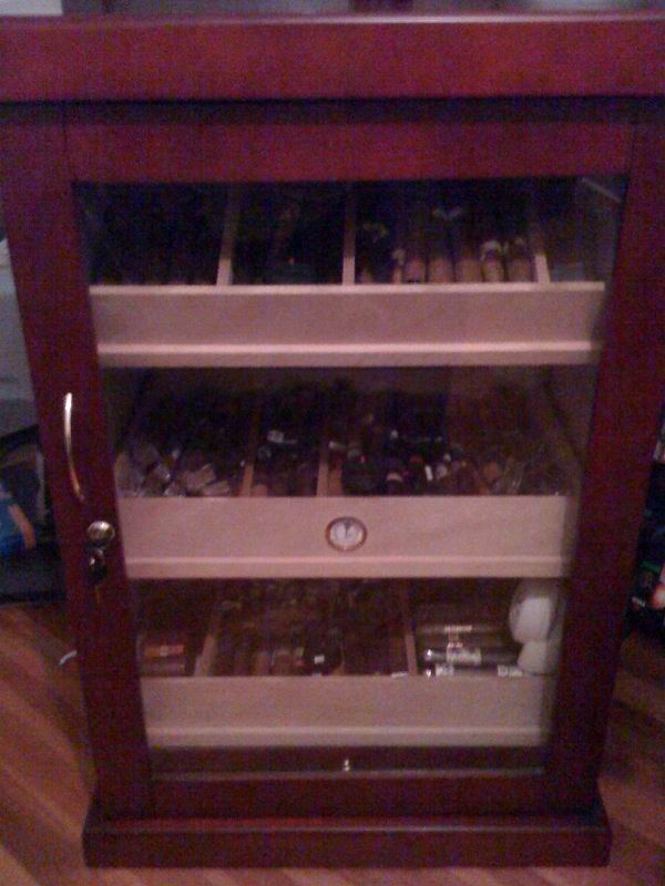 the unit is 35x22x16 with a glass front New insulation around door and 2 oust fans a cigar oasis and 15 silica gel package in draw below. I put the humi in a room with AC running all day long, i have no humidification units at all for 2 weeks now here are the readings inside