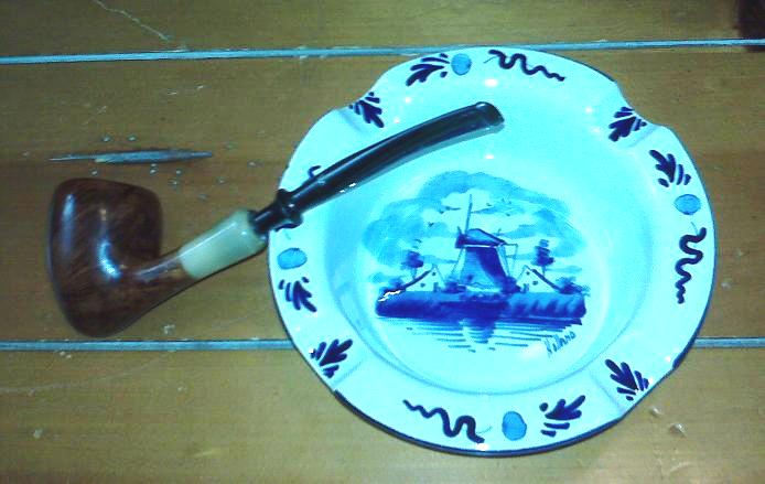 When I was recently in North Carolina visiting my uncle, I mentioned that I am a pipe smoker. My grandfather was also a pipe smoker. My uncle went to another room for a minute, and came back with this ash tray, which he gave to me. I remember it as a kid, being on my grandfather's desk. He had a rack of 6 pipes, a tobacco jar, and this ash tray. He only had "working man's" pipes, probably Grabows and the like, and I can recall that he smoked Captain Black. I think that the tobacco jar was "milk glass," which I think was pretty common for that era. This ash tray is Blue Delft, and was made in Holland. Not sure how he came to acquire this, as I'm thinking it was kind of fancy for them, but it's pretty neat. I'm very glad to own it now.
