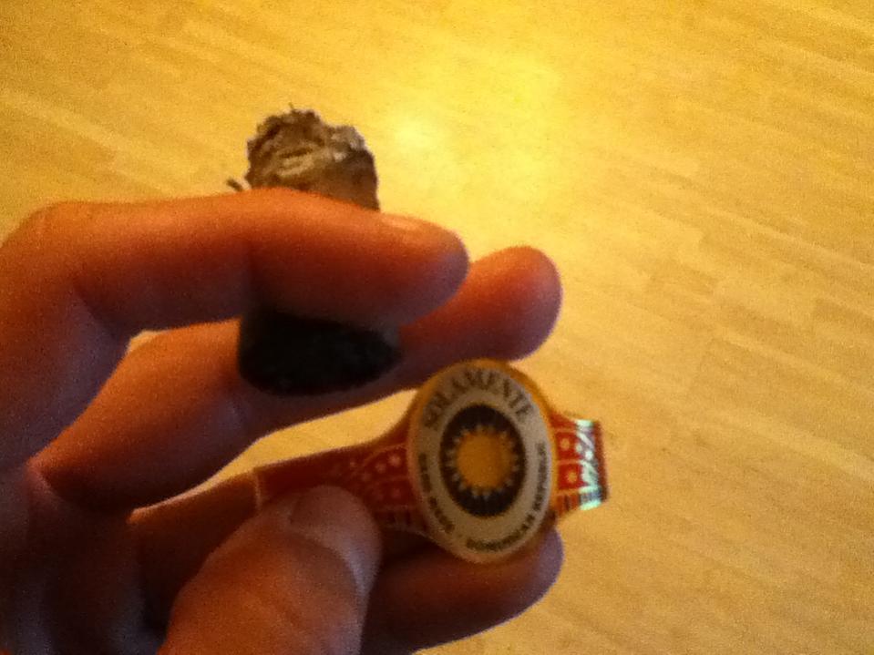 Tonight we're both having these Dominican Solamentes. Shawn had one at our last herf and so tonight I tried one on his request. We're each about halfway through 'em, and they've got a somewhat lighter taste than I usually go for, but tasty nonetheless. They've got a good draw, but somewhat inconsistent burn - two of the three that we've got going tonight are burning all sideways on us. Overall, pretty tasty, though!