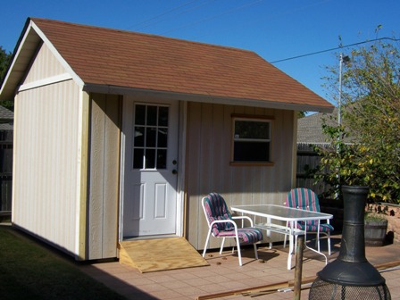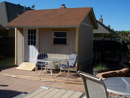 LOL! I've got a good sized back yard. The slab/patio that the shed is on one corner of is 26' x 50', it was built as a sport court, but I converted it into a large patio, built some decking on part of it and had fake tile work sprayed into it with some kinda spray vinyl/cement concotion like they put around pools. I spend alot of time out there!