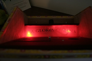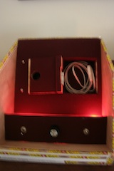 Speaker runs off ipod so there's no need to worry about batteries for music and lights can run for days with a 9v batt. Sorry about the crappy pictures... goto a new computer and don't have all of my photo software on it yet
