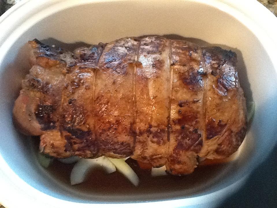 Nice Brad. I took the pork out of the fridge after 36 hours in the marinade.mi tied it up and seared it. Put it in the crock pot with about a 1/4 inch of dr pepper in the bottom, some onions and a tablespoon of chipotles. Got it on high until 3 pm then I'll turn it down to low until 5. I used minimal liquid and hope it will maintain shape.