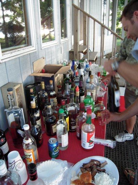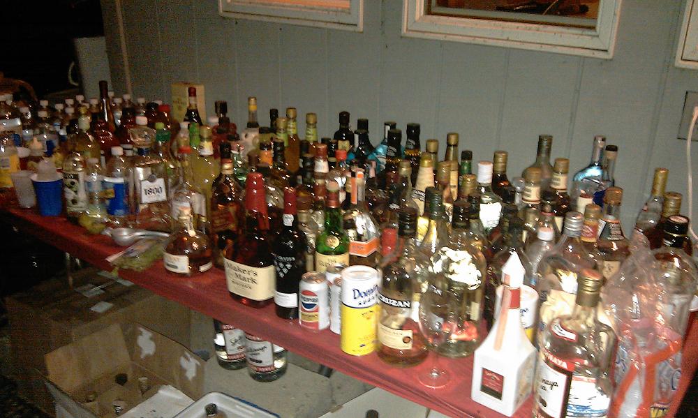 This year that entire table was filled with bottles - practically no extra room to set anything down. Plus extra bottles under the table. Fairly ridiculous.