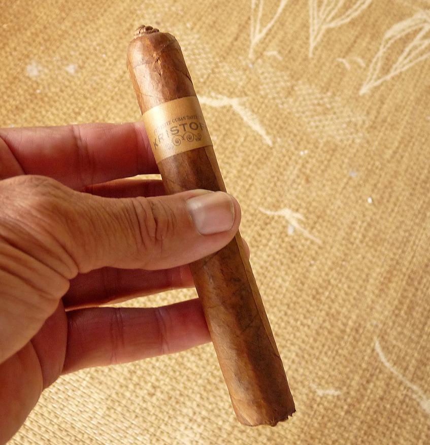 5.5x54 Wrapper: Nicaraguan Habano Criollo Binder: Dominican Republic Filler: Nicaragua, Dominican Republic Pigtail cap and unfinished foot Prelight: Dried fruit flavors, apricot and raisin and light cedar flavors 1st 1/3 Dry cedar, dark tobacco, hay, spice, cocoa, slightly hard draw, so far the flavors are muted, dry and plain but smoking cool, medium body 2nd 1/3 Flavors slightly increasing and creamy, sweet wrapper, burn has been off so far. Draw opens up finally. Final 1/3 Earthiness starts up, and the hay describe as a type of hardwood quality. A bit of a harsh edge has developed, cannoning never corrected. Many of the other Kristoff's I've had had more flavor and smoothness. Smoke time 1 hr 15 min Score 6.5 out of 10