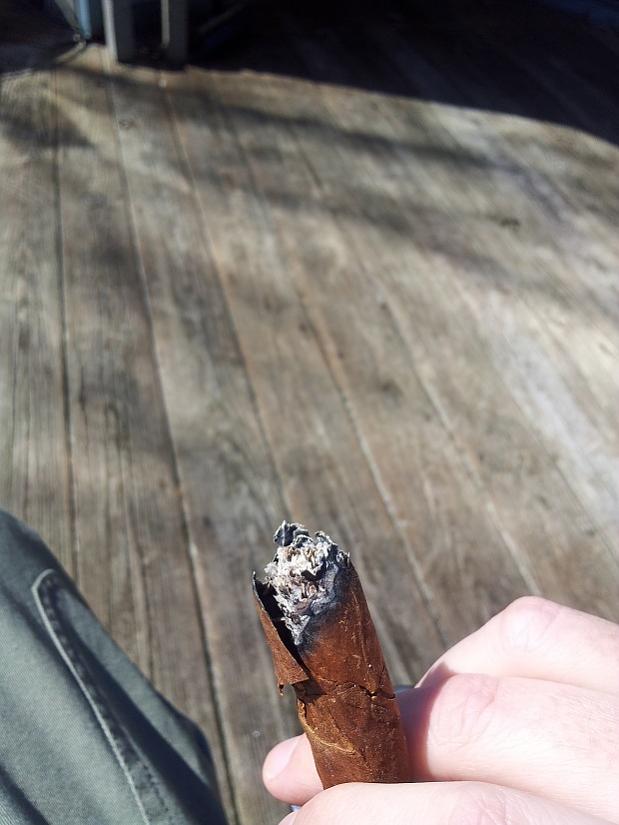 With the sun finally shining over the nutmeg state, I broke out the "Petit Bouquet" perfecto. It is still a little cold, and windy than I anticipated, but here is my review. Pictures coming forthwith, or when I figure out how to get them out of my phone. I have always been enamored by perfectos. In my mind, it is the quintessential cigar. Having sought out the few true perfectos on the market, I have an even deeper appreciation for them. The ring gage contently changes as you smoke through them, so they tend have more action than the same blend in a straight sided shape. Oliva's O perfecto is a great example of this phenomenon, or at least my theory thereof. Unwrapping--I was very nervous that this stick was going to turn to dust. The foil was sort of tricky to get off. It was extremely delicate and had melded (but that god did not adhere) to the wrapper. Once I had the whole thing opened, the stick was pretty much intact. I normally have a very spicy diet. Preparing for this smoke, I ate a very bland lunch so I wouldn't miss the subtleties of this smoke. Cold draw--One end was open, and I forgot to note which end is officially "up" but I took a guess and drew from the already opened end. I got a faint incense floral scent. I clipped the other end just to make sure I didn't just torch the wrapper. The floral component was a little stronger and quit pleasant. Light--Again, very cautious about the whole stick igniting in one burst, I applied the my torch lighter very carefully. My other fear which is always (I've heard) a fear with vintage cigars is it would be completely flavorless. Immediately, I was rewarded with a mix of flowery incense. Wow! It was the sweet perfume of a Cuban, only that perfume. No tobacco taste, no spice, barnyard, or anything else. 1st 3rd--The floral component dominated this smoke. The wind kicked up some gusts at the same time, but even the smoke coming back at me was like the incense rack at the local "tobacco shop." This was more like a very good aromatic pipe tobacco than cigar. 2nd 3rd--I went from visions of strolling through a field of wild flowers to rolling in it. Some light tea notes, but none of the spicy or earthy components that make me love cigars. If all cigar tasted like this, CA would be full of Bieber fans. It was however, a nearly perfect cigar for a spring day. ...and then...the wrapper started to unravel. The situation deteriorated quickly and the wrapper came off in sheets. 3rd 3rd--Really, beyond the 1/2 way mark (geometrically) I was holding the stick together with my fingers. Floral stayed dominate, but with some clove and slight herbal elements. Overall--One hell of an experience. This cigar is at least 60 years old and could potentially be close to 100. The fact that it tasted like anything is amazing. The fact that it was enjoyable was great. It actually reminded me of Indian Beede cigarettes, which I smoked one summer because Charles Bukowski mentioned them once. I could have it smoked inside and claimed some damn hippies broke into the place, but I am a little more tan than I was this morning. The big question--Box worthy? If they were available (for all I know that was the last one on earth) and reasonable I'd buy a box. I really wish I could go back in time and have a fresh one to see what if it the floral part was even perceptible. I probably wouldn't rip through it like My Father's lanceros, but they'd be a nice change of pace for that rare occasion when I was feeling sensitive and ordered "just a salad."