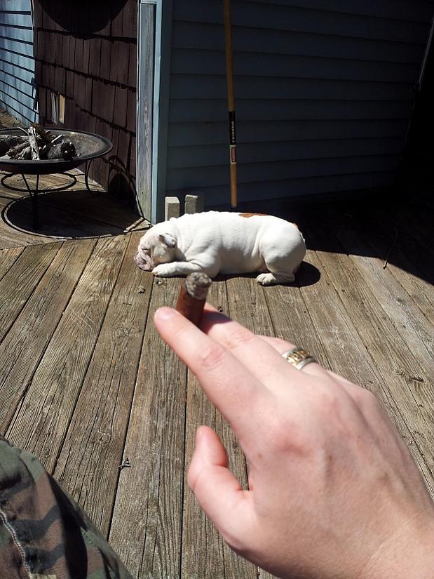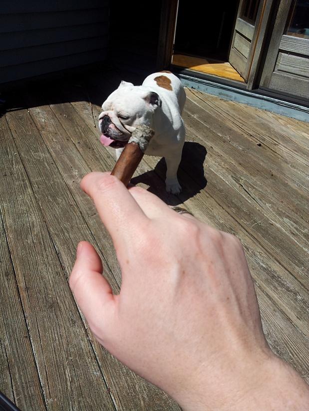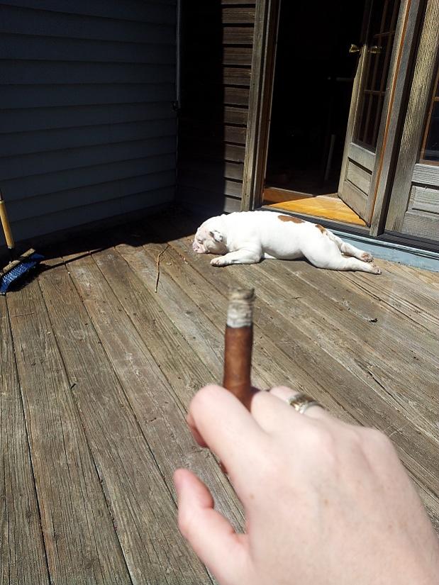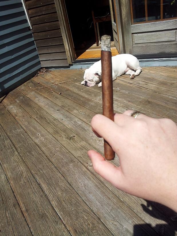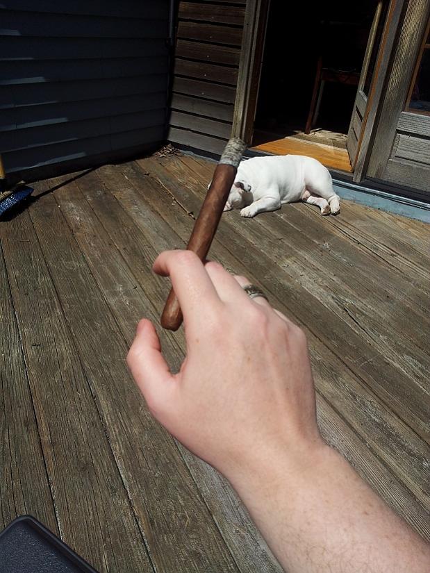Light/first third—Muscles, meat, this is the stick I’d want after months of trekking through the jungles of Africa. It raw and potent. I wished it was hotter outside. This will be a great stick to sweat out an august afternoon in the Nutmeg State. Espresso, steak straight from the grill with a side of grilled peppers. A slight undercurrent of nutmeg, and or cinnamon—this would work very well with Bacardi 8 rum. A bright white ash formed along a nice straight burn line and held together even in the brisk wind.