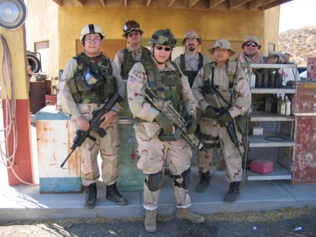 Here's an image of some of the guys I use to roll with back in California when I use to airsoft a lot. This was taken on the Sanna Ranch set (the one used for shows like JAG, NCIS, and other shows that need a psuedo-Middle East look in California). This was for an event, Operation: Serpent Hammer, that was suppose to have been a fundraiser event for the family of Scott Helvenston (there was a lot of drama between the family and event organizers the months following).