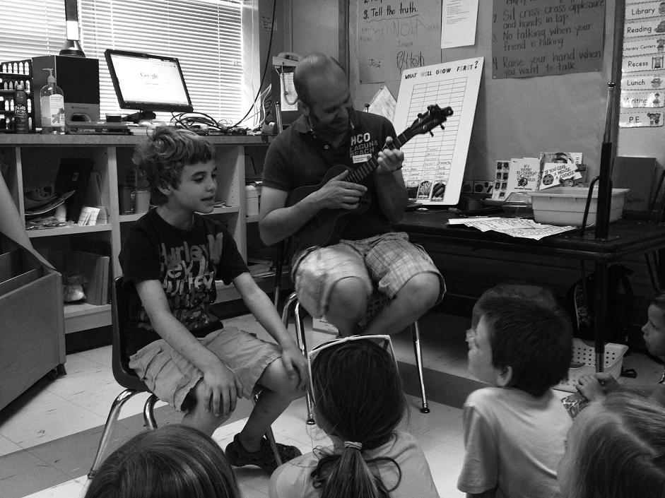 I have TERRIBLE stage fright, so I figured a room full of kindergarteners is a great place to start. Alex (my son) did a short intro on what an ukulele is, how to say it properly, where it comes from, etc.