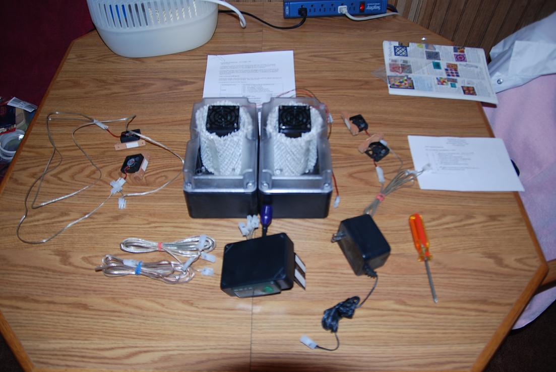 Since I'm gone for up to two months at a time, I got carried away with this system, It has two 1.5 quart tanks, 4 remote fans two are slaved to the tank fans and two are on a timer. all 4 can be rigged to timer or tank circuits.