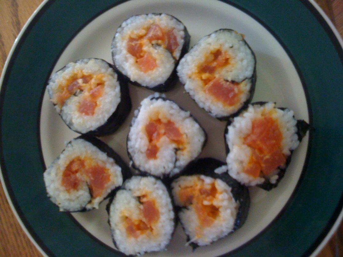 Anyway, I finally gathered all the ingredients earlier in the week and made my first 2 rolls today. First was just tuna, in the 2nd I added avocado, and the 3rd was spicy tuna. ![]() ![]() ![]() Making the wasabi made my eyes almost water a bit. I wish the sauce for the spicy tuna turned out a bit hotter, but otherwise, I was quite pleased with my initial attempt. |