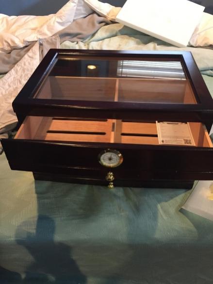 ![]() Seems to be the Caledonia HERE. I think right off the bat I would get some food grade silicone and seal around the glass (inside the lid), boxes like that have been known to have issues with the seal around the glass, makes it hard to hold humidity. I'd also get a digital hygrometer for it and not rely on the build in analog. Looks like a pretty typical humidor, except for the all the possible places is could leak, I'm guessing the draw seals are pretty tight? Or at least I'd expect them to tighten up once you season it. |