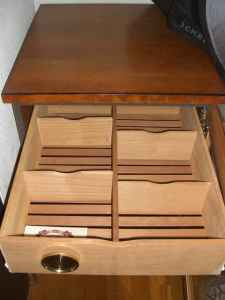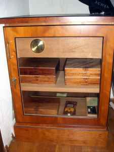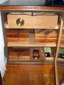 It used an old fashioned room humidifier for humidification. Once the Accumonitor was introduced, Matt redesigned the cabinet so it would have more room for cigar storage instead of storing the bulky room humidifier.