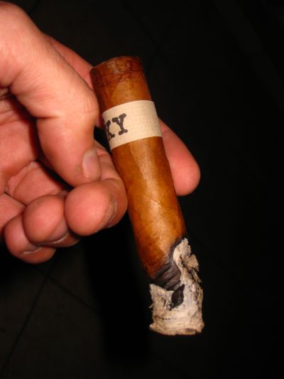 20 minutes in: A little bit more mild than my usual taste, but at the same time has something of a little raw edge. Here's a couple pix of what we're smokin'.