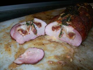 Slice 3/4 way down the middle (cut like a boat, ends will help hold stuff in roast).