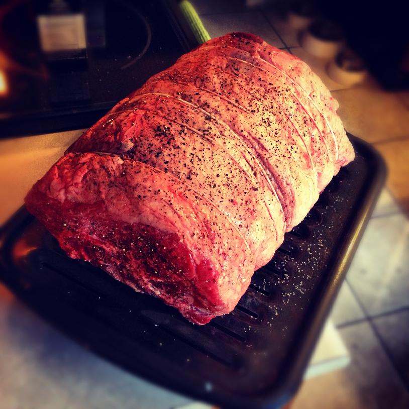Having a get together tomorrow night. Giving 10 of my closest cigar smoking, beer drinking friends pretty much free reign at my stash. We can't smoke and drink without eating, so here's the beautiful cut of meat that I got. 14lb bone-in Ribeye primal. Cooking it on the Big Green Egg. Going to be insane.