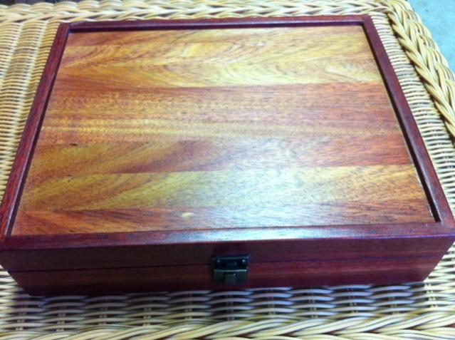 Forrest and I worked out a trade awhile back and I was on the receiving end of mind on Saturday. Talk about a find piece of work-this thing is made out of 3/8" thick bloodwood (I think that's what it ended up being IIRC).