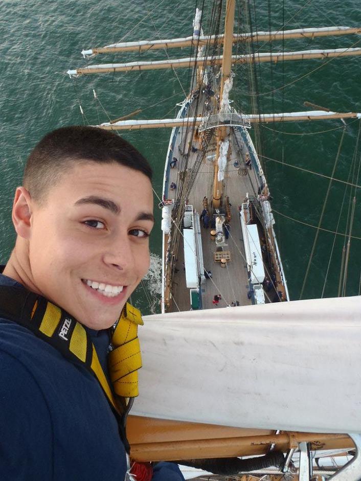 Rob is at the Coast Guard Academy in New London, CT. Since he's going Officer, I'm promise he had nothing to do with any actual Coastie seamanship, besides slaving on the Barque Eagle