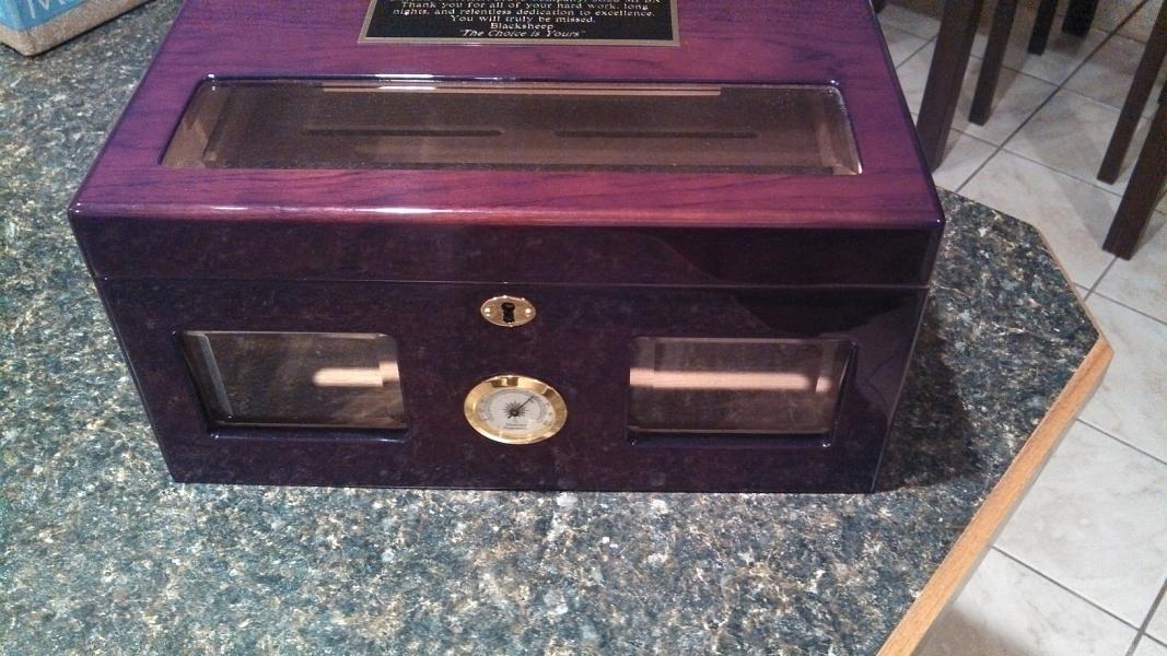 Hey everyone, I received my first humidor as a departing gift from my last unit. They are like family and knowing that I love cigars they got me something different from the standard plaque sort of departure gift. Its engraved with my name and a very heartfelt message. Needless to say it is very special to me and I want to proudly display it. Very much with cigars in it.