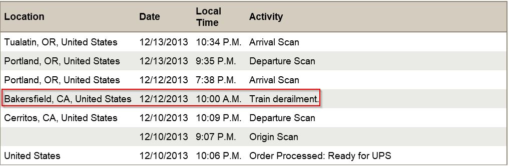 Does that mean UPS utilizes trains? When I worked for them, we did unload 'rail boxes' so maybe they do. Or did the train derailment just delay the package leaving. Very interesting.