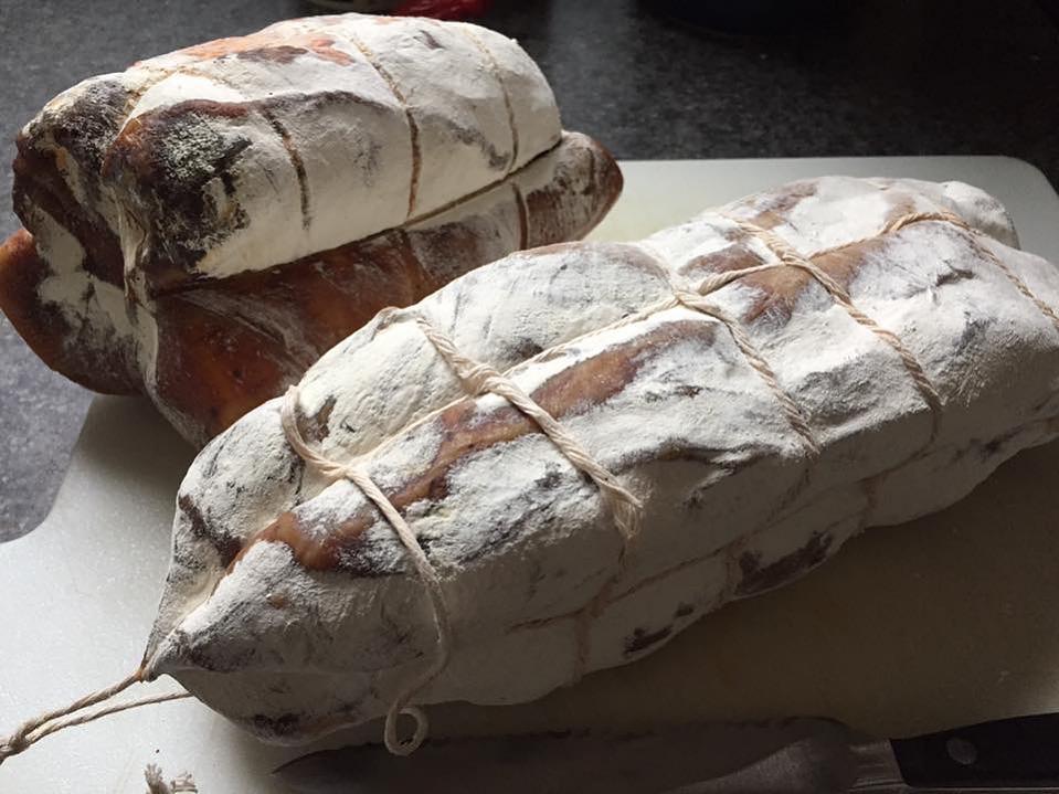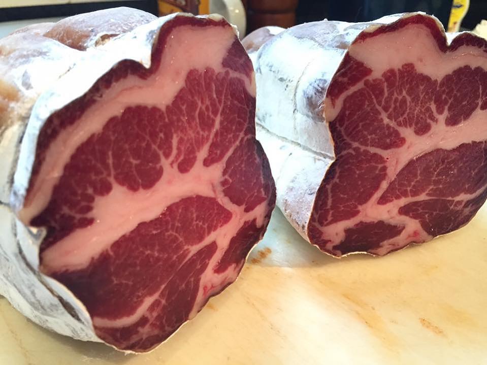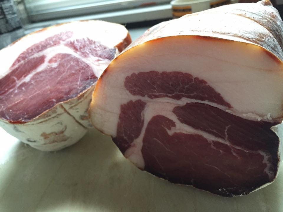 ![]() The smaller one in the back is a lonzardo, loin/fat cap. The one in the front is a coppa.