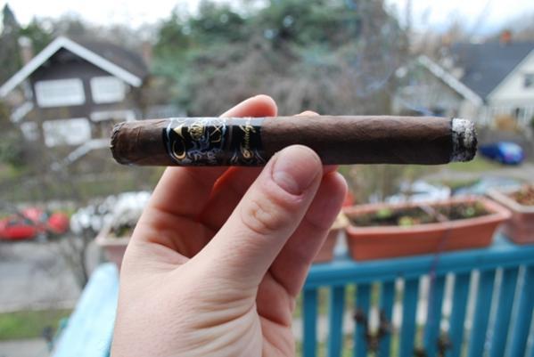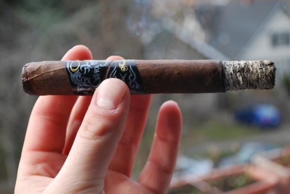 more sweet and woody notes coming into the picture in the last 3rd. got some toast flavors as well. the burn was great and very consistant. didnt really want to take off the band, but i had to the bottom one off. the flavour of the smoke was like campfire toast...not bad at all.