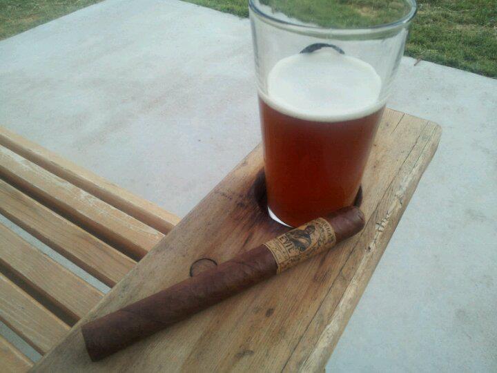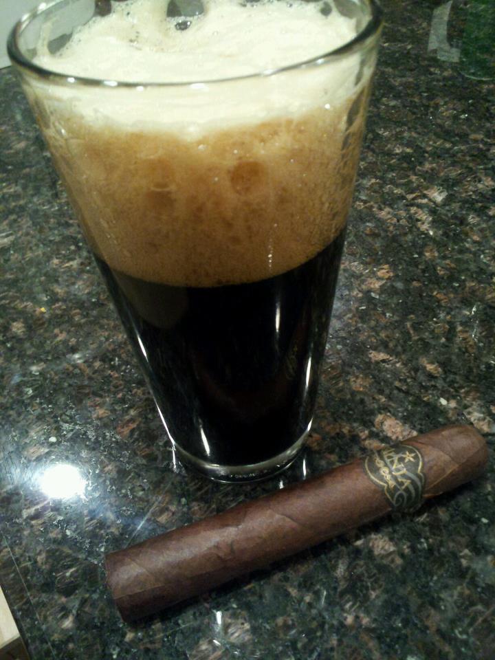I don't have a photo, but my favorite unwinding pairing is a La Aurora Erin Go Bragh and about three fingers of Jameson's over ice in a rocks glass.