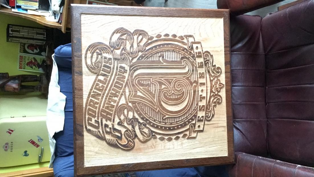 But the highlights are this woodcarving of the logo and a metal sign