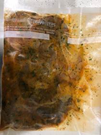 Marinated in the vacuum bag for about 24 hours and cooked for 6.5 hours at 130 degrees: