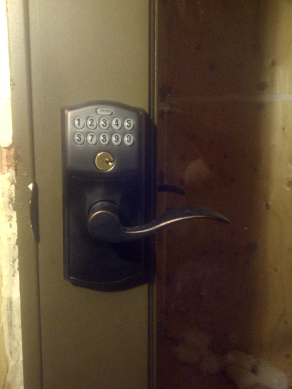 -Combination door lock to keep kids out, and I don't have to carry a key