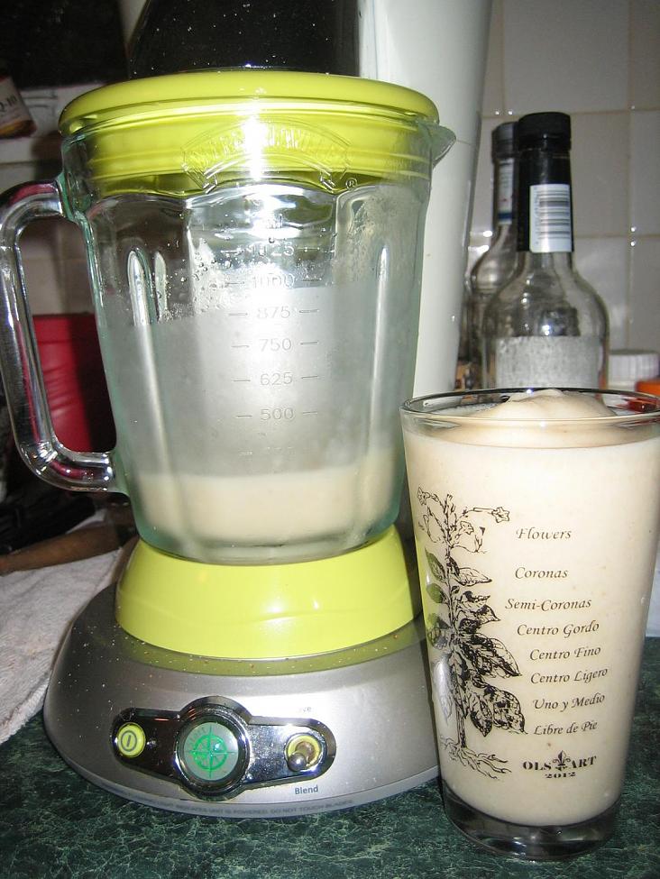 tobacco plant. Look at how the superior design of the glass shows off that perfect lilt of fluffiness that only the Jimmy Buffet Frozen Concoction Maker can impart, lol. And yes, I have some of those glasses in the WTS forum. Another perfect pair is the half a shot of Rittenhouse Rye that I added to the mix to complement that banana. You talk about GOOD, a coupla shots of Captain Morgan, the banana, the pina colada and that sweet and funky taste of whiskey. |