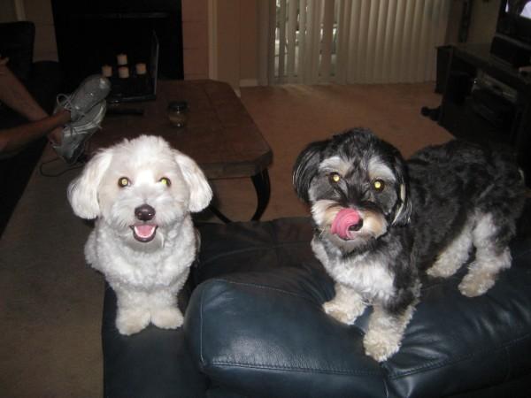 They're full grown now (third picture). Lexie is about 11lbs, Benji is about 13