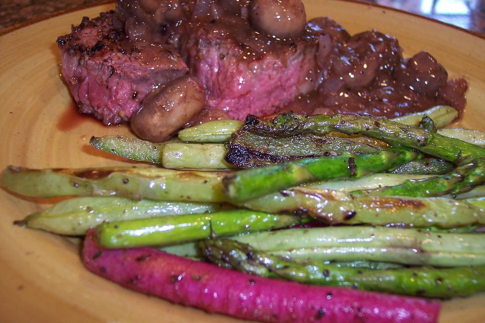 .My wife sauted some mushrooms that were out of this world. The steak, could be cut with a fork