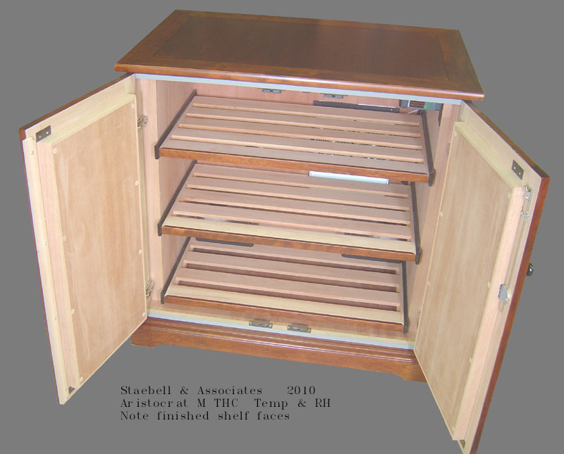 Since we decided to go with the 25" depth the capacity is about the same as an M Plus cabinet according to Bob. The eventual top unit that will be added will be identical in finish but 20" deep with crown and a flat bottom. I'm hoping that will be enough for me considering now I have a 100 count desktop humidor.