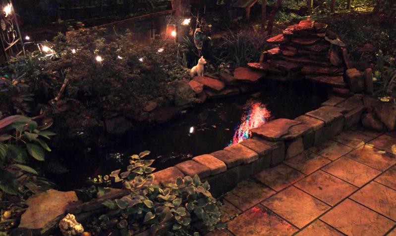 The pond at night with cigar smoke trailing. Only real place besides the stoop where I can smoke.