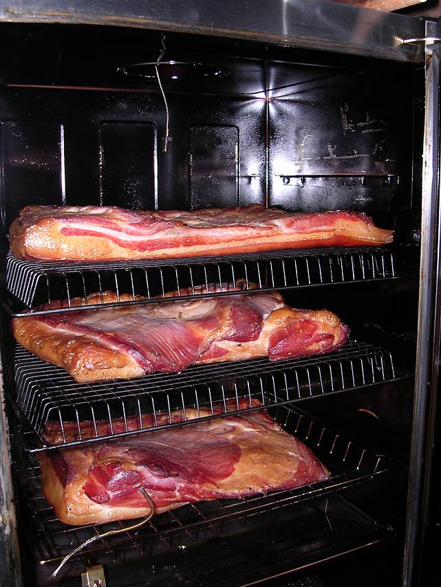 Here's a pic of some bacon I made in the Bradley. That was a small batch. I'll usually do 25lbs at a time now.