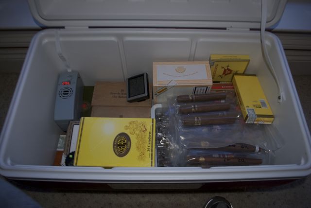 Here are my two Coolerdors. I have a desktop that is sitting empty. The Igloo Ice cube is NC, and the Red Igloo is my CC cooler. I have the active humidification going in the CC cooler. The heat is coming on every now and then. The red igloo cooler just doesn't seem to seal as good as the other.