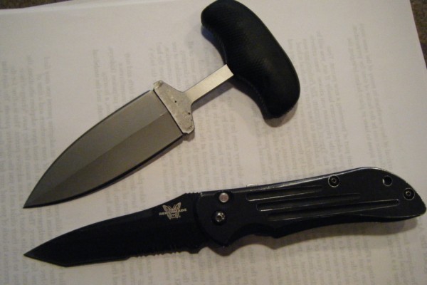 Here are mine, a Benchmade auto folder in the pocket and a Cold Steel punch knife that stays attatched to my duty rig (in sheath).