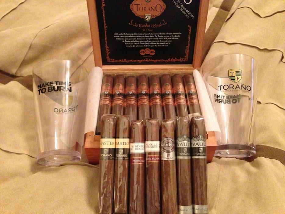 So I picked up a box of Exodus 1959 50 Year Robustos, got 7 free sticks, 2 Toraņo pint glasses and 10 raffle tickets. |
