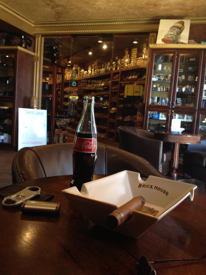 Hanging at the Churchill lounge having some pizza and then going to enjoy a Partagas Short with a cold bottle of old school coke (made with sugar)