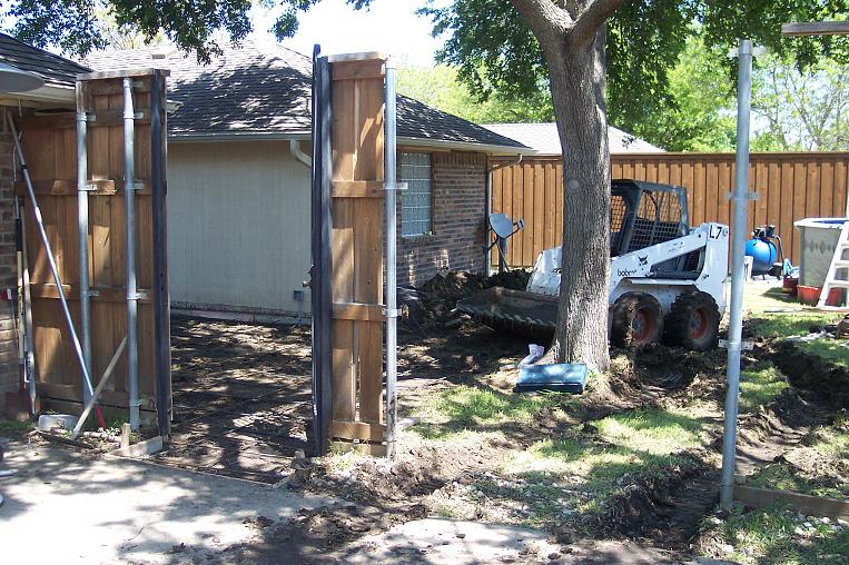 Here is digging up yard.. to lay a slab.. Slab is 6" deep, with 12" deep along right side and into edge closest to outside yard, and 6 piers 24" deep in case I decide to add a cedar patio cover.