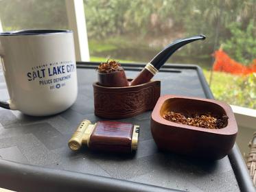 '12 McC Wilderness in the Talbot Ligne Bretagne Bulldog and a large Carmel Latte on the side. Enjoyed a sample shot of ABK6 VSOP Cognac… ![]() '19 Cringle Flake sample from a piper in the Altinay Lattice Bent Billiard… ![]() Falcon Friday with some '17 Dunhill Navy Roll and Twinings English Breakfast tea. Excellent blend. Maybe some rain later today… ![]() One more day before the new year 2023