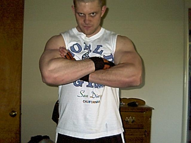 I don't know why I don't try to jump on this thread to motivate myself to stick to my routine. I fell off the bandwagon with training back in 2005. I probably didn't get more than a day a week in the gym since then. My rnew years resolution is to get back into the swing of things. My goal is to get back to how I looked in 2002.. Here is how I used to look, which is far from what I look like today.. In the pic, I am probably 230lbs @ 10-12% BF. Now, I am probably 225lbs, but closer to 20% BF (And weak as hell.. LOL)