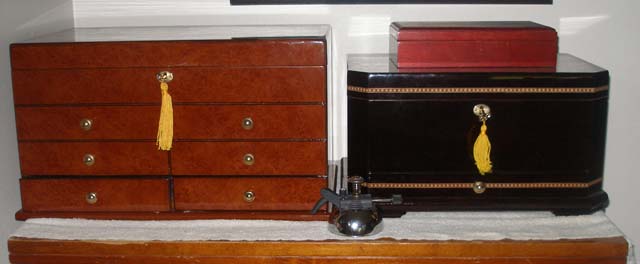 Ok so here are some pics of my humis. The 150 count is currently empty as I have been smoking done my singles while I have been buying boxes. The 10 count I use as a "dry box".Then there is the cooler. One of these days.....