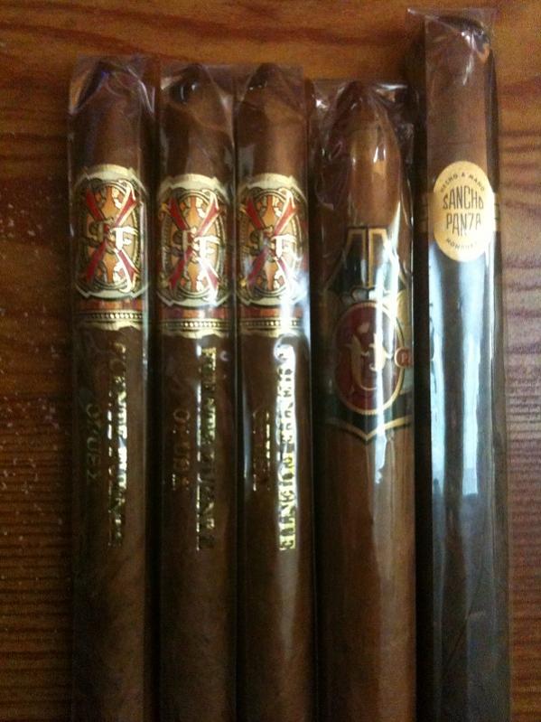 three Opus X that are tasting amazing considering the B&M just got them 5 days ago! you would think they had a few years on them! 2 Sancho Paza(one was already sacrificed), one Padilla Hybrid(never had)