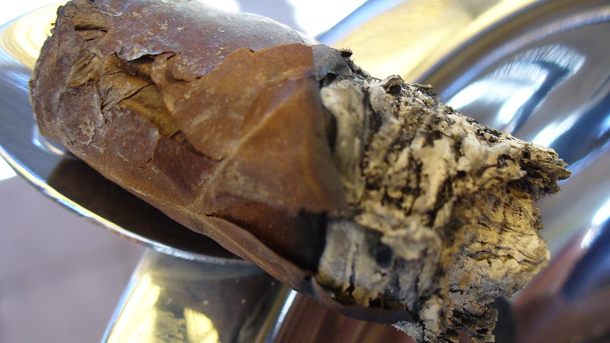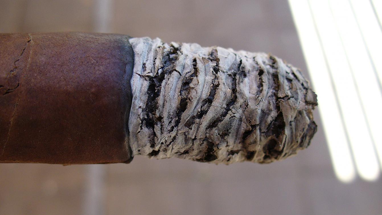 As you can see from the photos, the cigar began to disintegrate at about the halfway point. I smoke outdoors in the desert East of San Diego and humidity is 10% right now. Despite the dry environment and subsequent meltdown, this thing smoked perfectly to the very end. The photos are kinda scary, but man o man, if all my NC's tasted this good I would gladly take the ugly wrapper every time.